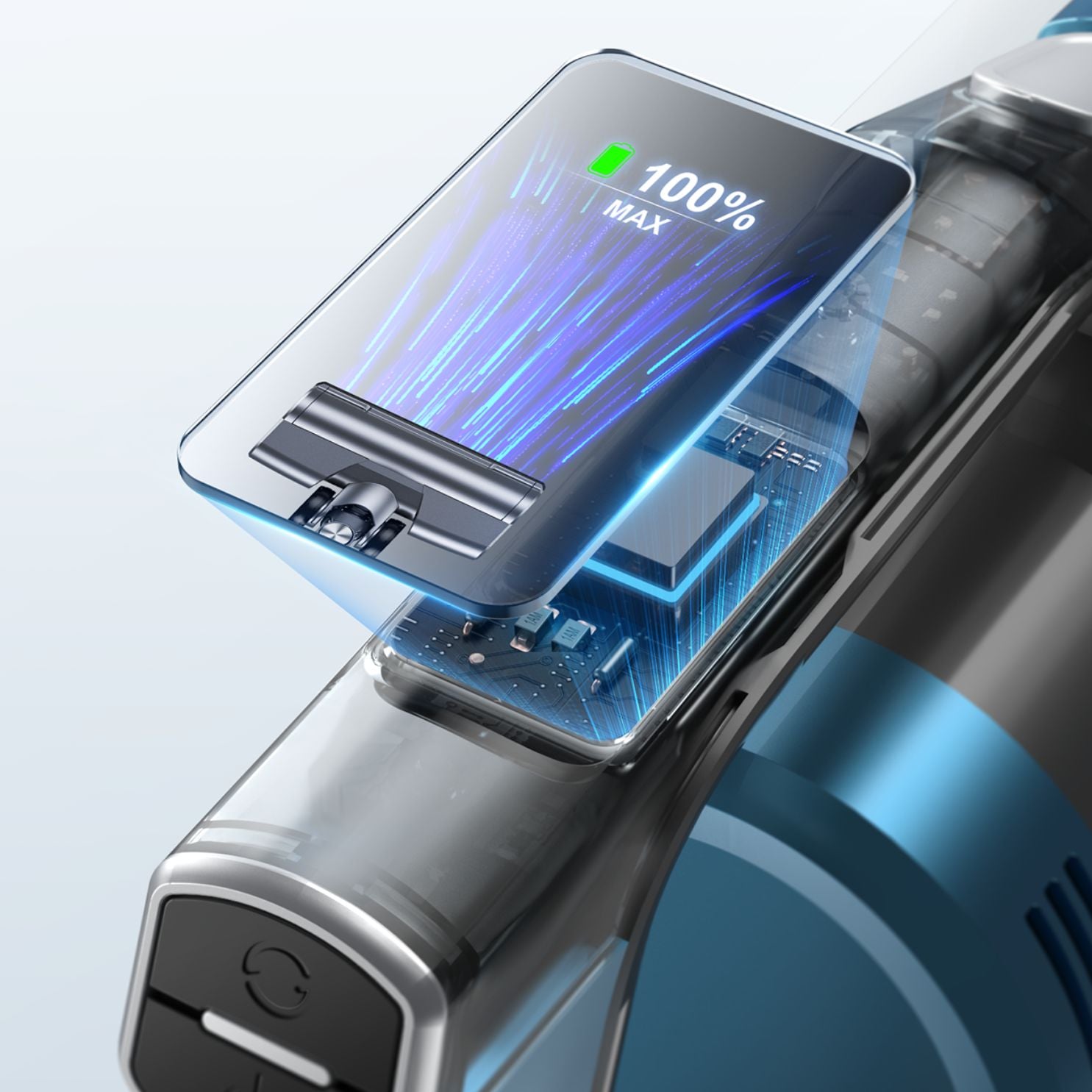 Laresar VC60 er udstyret med et kraftfuldt 5200 mAh batteri, der giver op til 160 minutters driftstid ved støvsugning og mopning – og helt op til 230 minutter ved kun støvsugning. Det gør den ideel til større hjem, hvor grundig rengøring kræver tid. Med én opladning kan du klare hele hjemmet uden afbrydelser.