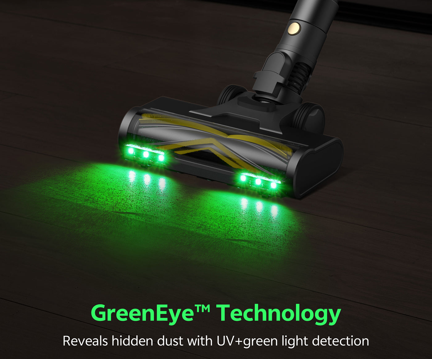 Ultenic U15 er udstyret med et grønt LED-lys på børstehovedet, der oplyser støv og snavs, som ellers kan være svært at se, hvilket sikrer en mere grundig rengøring.