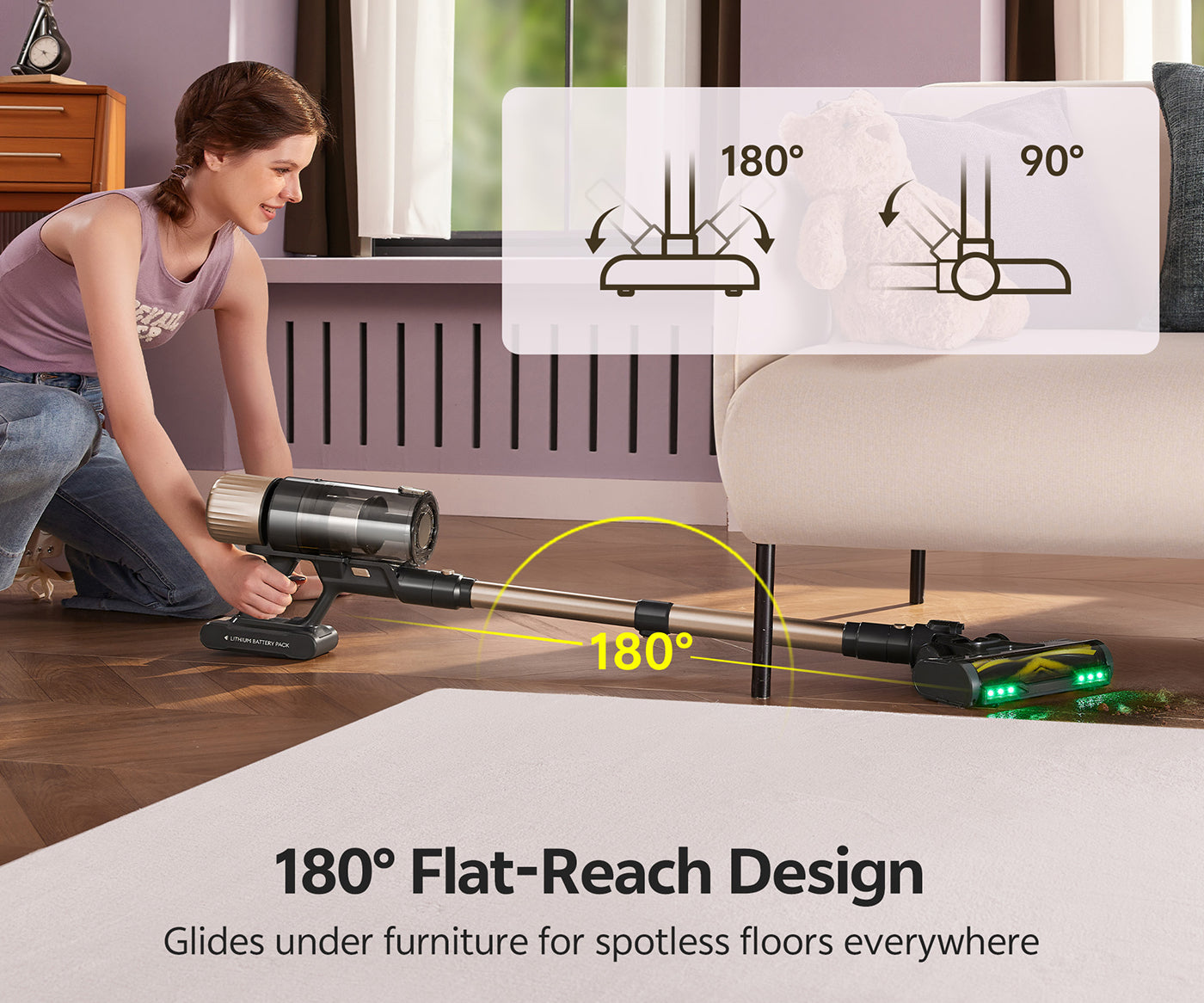 Det bøjelige mundstykke gør det nemt at nå ind under møbler og andre svært tilgængelige områder uden at skulle bøje sig, hvilket forbedrer ergonomien under rengøringen.