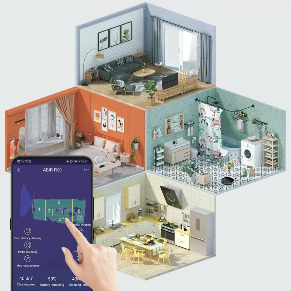 Avancerede navigationsalgoritmer og LiDAR + VSLAM teknologi sikrer, at Neakasa N3 robotstøvsuger effektivt dækker hele dit hjem uden at blive fanget. Den bruger laser til at skabe sig et overblik over dit hjem, igennem en kortlægning - dette kort kan du se i app’en. Således ved den altså hvilket område den skal rengøre. Derefter bruger den dels laseren og dels VSLAM teknologien til at identificere, afstandsbedømme og undgå diverse forhindringer. Det anbefales at fjerne løse ting fra gulvet inden rengøring sættes i gang, såsom ledninger, strømper og andre småting.