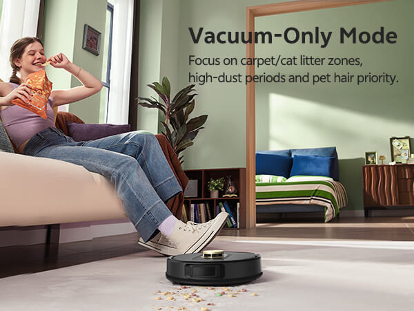 Den bruger LiDAR-lasersensorer til at kortlægge rummet med høj præcision. Det betyder, at den planlægger sin rute intelligent, undgår forhindringer og rengør hele området systematisk – i stedet for tilfældigt. Du kan desuden justere kortet og oprette no-go-zoner direkte i appen.